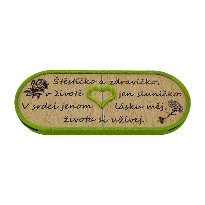 Dárková kazeta na peníze. Vytištěno na 3d tiskárně. Výsuvná deska s gravírovaným textem a grafikou z bukové překližky síly 4 mm. Rozměry dle tvaru až 204 x 96mm. Možnost různého textu, grafiky a různé barevné provedení krabiček.