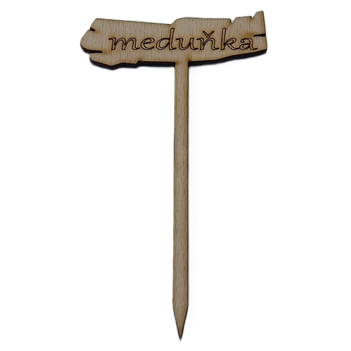 Dřevěná cedulka/zápich k bylinkám. Rozměr 8 x 14 cm. Délka zápichu 12cm. Vyrobeno z bukové překližky síly 4 mm. Možnost individuální zakázky.
