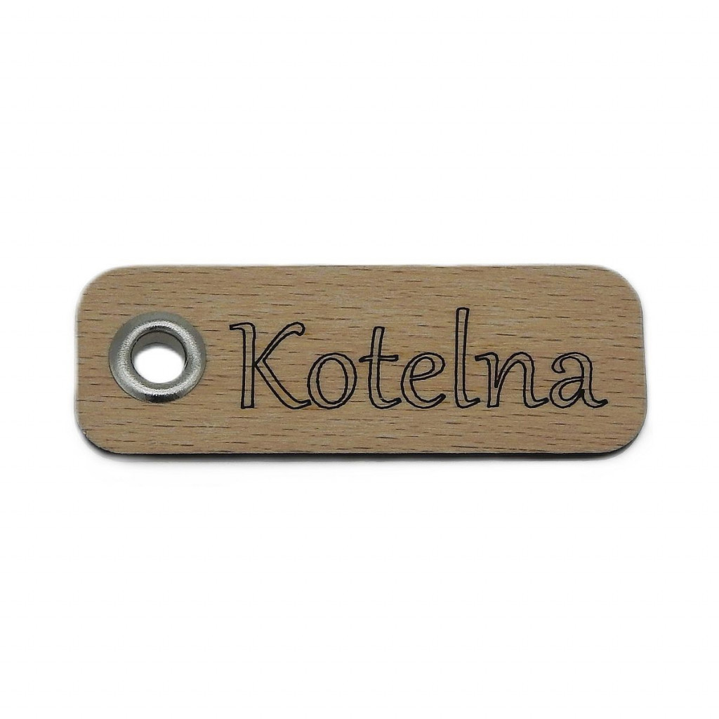 Dřevěná cedulka - Klíčenka, Kotelna - Obrysově