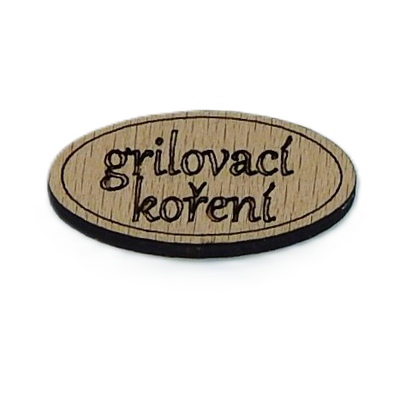 Dřevěná cedulka ke koření. Rozměr 3,5 x 1,5 cm. Vyrobeno z bukové překližky síly 4mm. Možnost individuální zakázky.