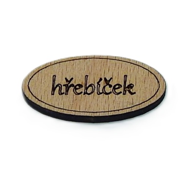 Dřevěná cedulka ke koření. Rozměr 3,5 x 1,5 cm. Vyrobeno z bukové překližky síly 4mm. Možnost individuální zakázky.