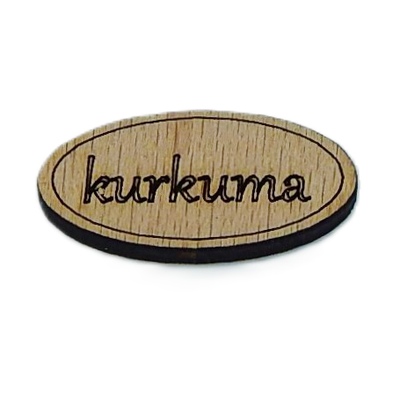 Dřevěná cedulka ke koření. Rozměr 3,5 x 1,5 cm. Vyrobeno z bukové překližky síly 4mm. Možnost individuální zakázky.