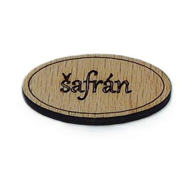Dřevěná cedulka ke koření. Rozměr 3,5 x 1,5 cm. Vyrobeno z bukové překližky síly 4mm. Možnost individuální zakázky.