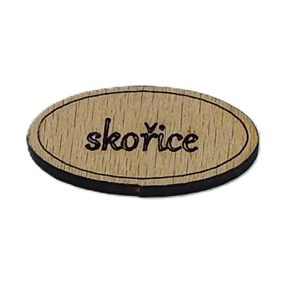 Dřevěná cedulka ke koření. Rozměr 3,5 x 1,5 cm. Vyrobeno z bukové překližky síly 4mm. Možnost individuální zakázky.