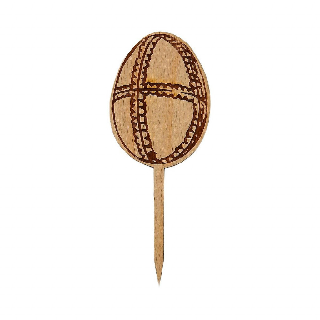Dřevěná dekorace velikonoční kraslice z bukové překližky síly 4 mm. Rozměry 7 x 4 cm. Zápich délky 8 cm. Kazdý typ velikonoční dekorace je možné vyrobit s různými zápichy, přímo jako součást dekorace, držák dekorace z 3d tiskárny a zápich špejle, stojánek z 3d tiskárny.
