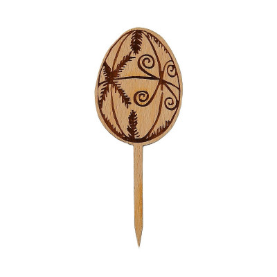 Dřevěná dekorace velikonoční kraslice z bukové překližky síly 4 mm. Rozměry 7 x 4 cm. Zápich délky 8 cm. Kazdý typ velikonoční dekorace je možné vyrobit s různými zápichy, přímo jako součást dekorace, držák dekorace z 3d tiskárny a zápich špejle, stojánek z 3d tiskárny. 3d držáky a stojánky různých provedení najdete v sekci 3d program.