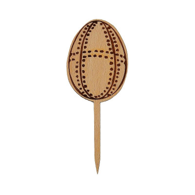 Dřevěná dekorace velikonoční kraslice z bukové překližky síly 4 mm. Rozměry 7 x 4 cm. Zápich délky 8 cm. Kazdý typ velikonoční dekorace je možné vyrobit s různými zápichy, přímo jako součást dekorace, držák dekorace z 3d tiskárny a zápich špejle, stojánek z 3d tiskárny. 3d držáky a stojánky různých provedení najdete v sekci 3d program.