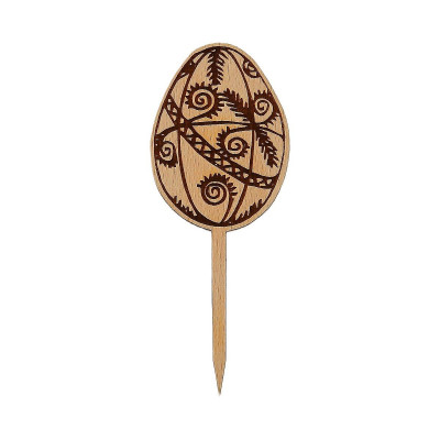 Dřevěná dekorace velikonoční kraslice z bukové překližky síly 4 mm. Rozměry 7 x 4 cm. Zápich délky 8 cm. Kazdý typ velikonoční dekorace je možné vyrobit s různými zápichy, přímo jako součást dekorace, držák dekorace z 3d tiskárny a zápich špejle, stojánek z 3d tiskárny. 3d držáky a stojánky různých provedení najdete v sekci 3d program.