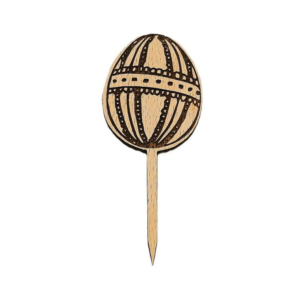 Dřevěná dekorace velikonoční kraslice z bukové překližky síly 4 mm. Rozměry 7 x 4 cm. Zápich délky 8 cm. Kazdý typ velikonoční dekorace je možné vyrobit s různými zápichy, přímo jako součást dekorace, držák dekorace z 3d tiskárny a zápich špejle, stojánek z 3d tiskárny. 3d držáky a stojánky různých provedení najdete v sekci 3d program.
