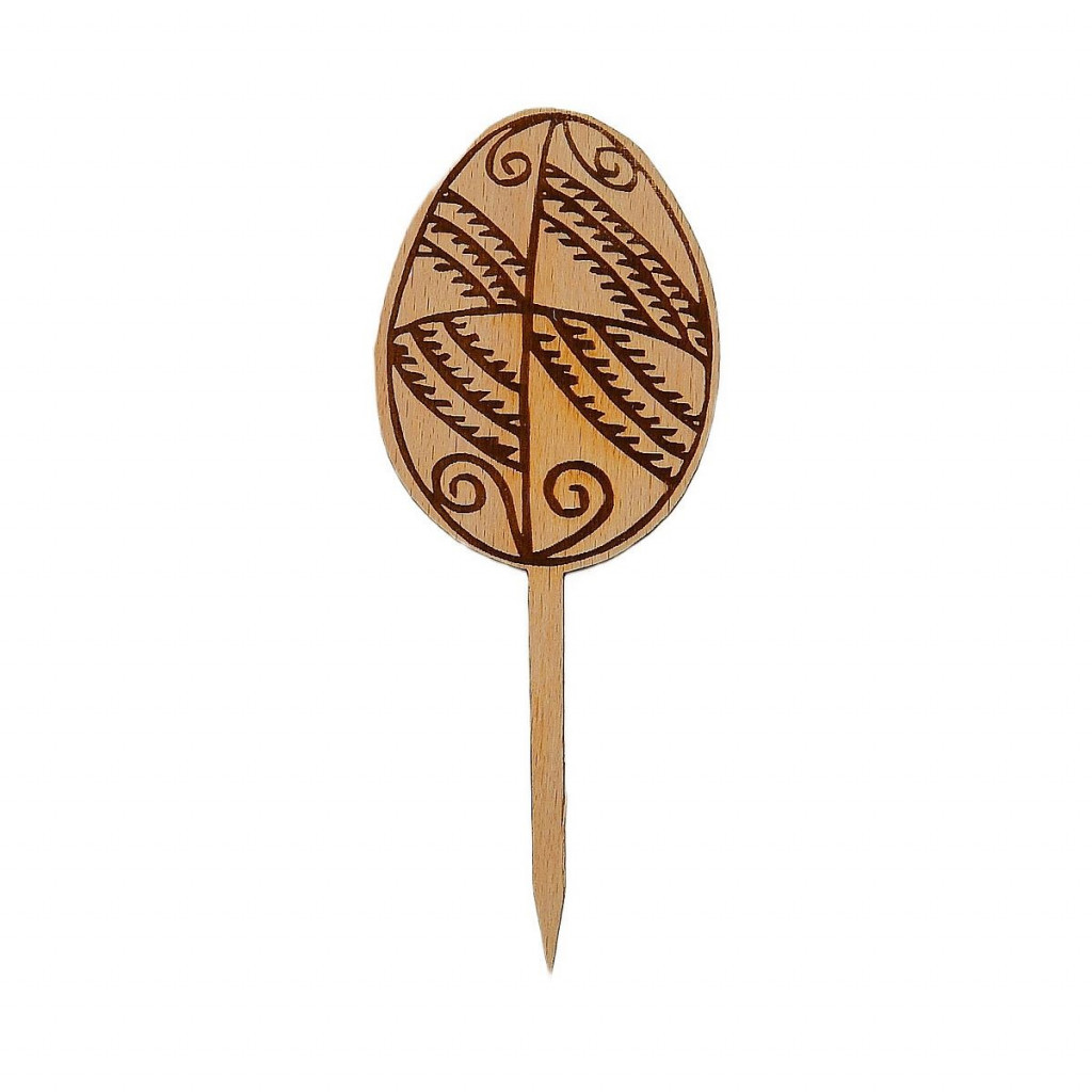 Dřevěná dekorace velikonoční kraslice z bukové překližky síly 4 mm. Rozměry 7 x 4 cm. Zápich délky 8 cm. Kazdý typ velikonoční dekorace je možné vyrobit s různými zápichy, přímo jako součást dekorace, držák dekorace z 3d tiskárny a zápich špejle, stojánek z 3d tiskárny.