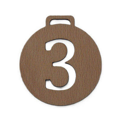 Dřevěná cedulka, medaile. Vyrobeno z bukové překližky síly 4 mm. Rozměr 7 x 7,5 cm.