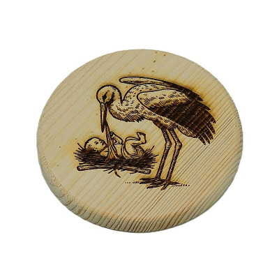 Dřevěný podtácek - Čáp s miminkem 2