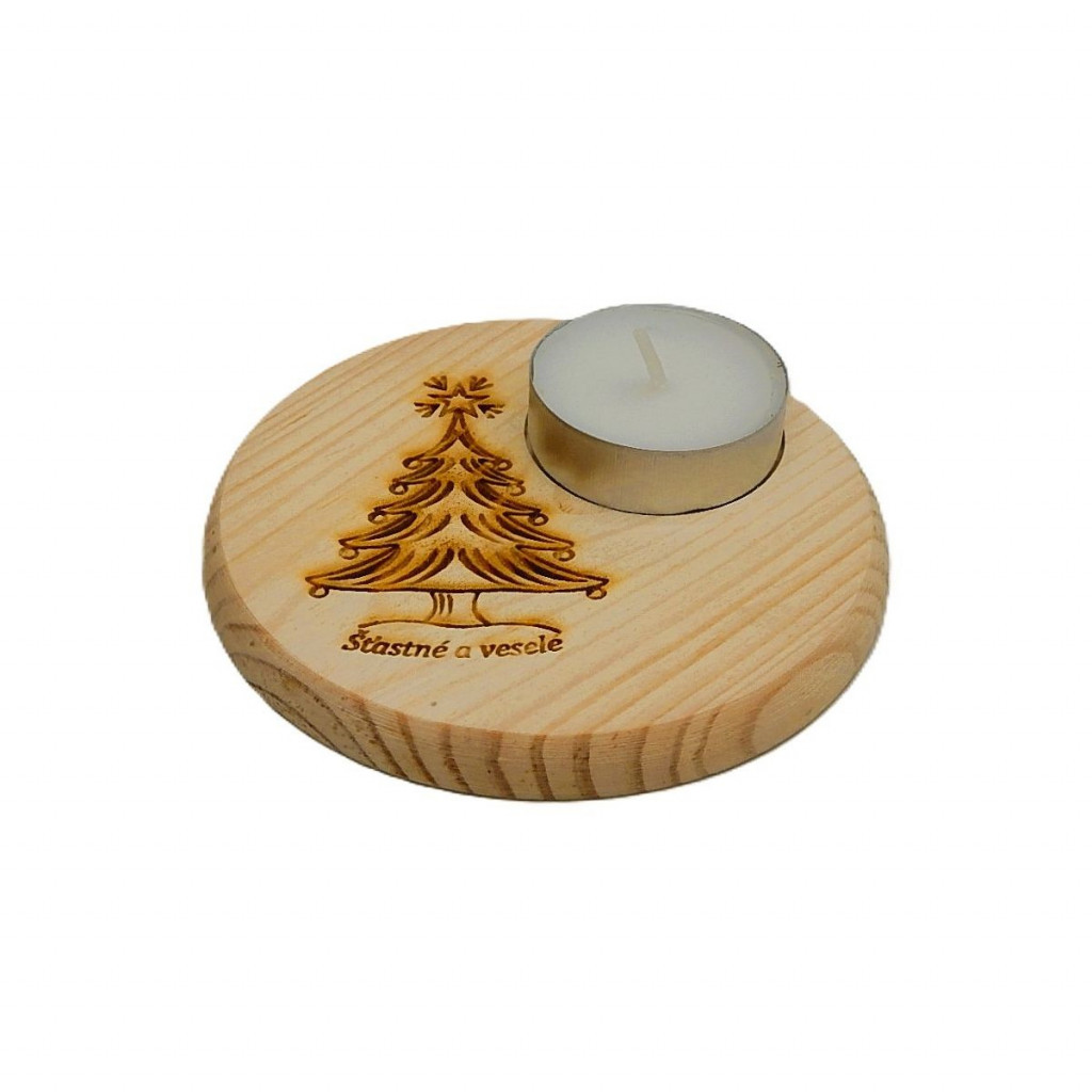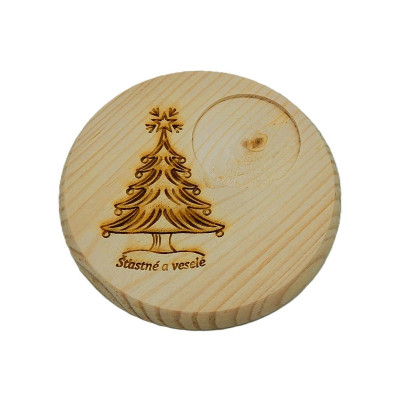Dřevěný podtácek - Šťastné a veselé, stromek
