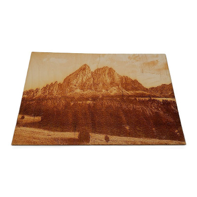 Fotografie vygravírovaná na topolové překližce síly 6 mm. Rozměry 253 x 380 mm.