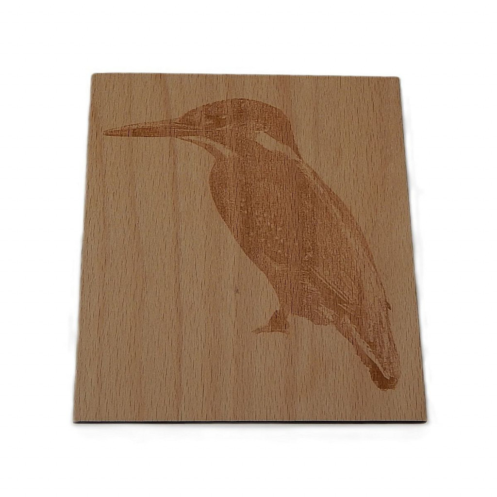 Fotografie vygravírovaná na bukové překližce síly 4 mm. Rozměry 138 x 120 mm.