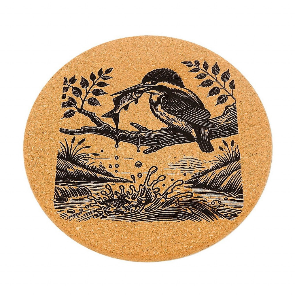 Kuchyňská pomůcka - Korková podložka pod hrnec, Ledňáček