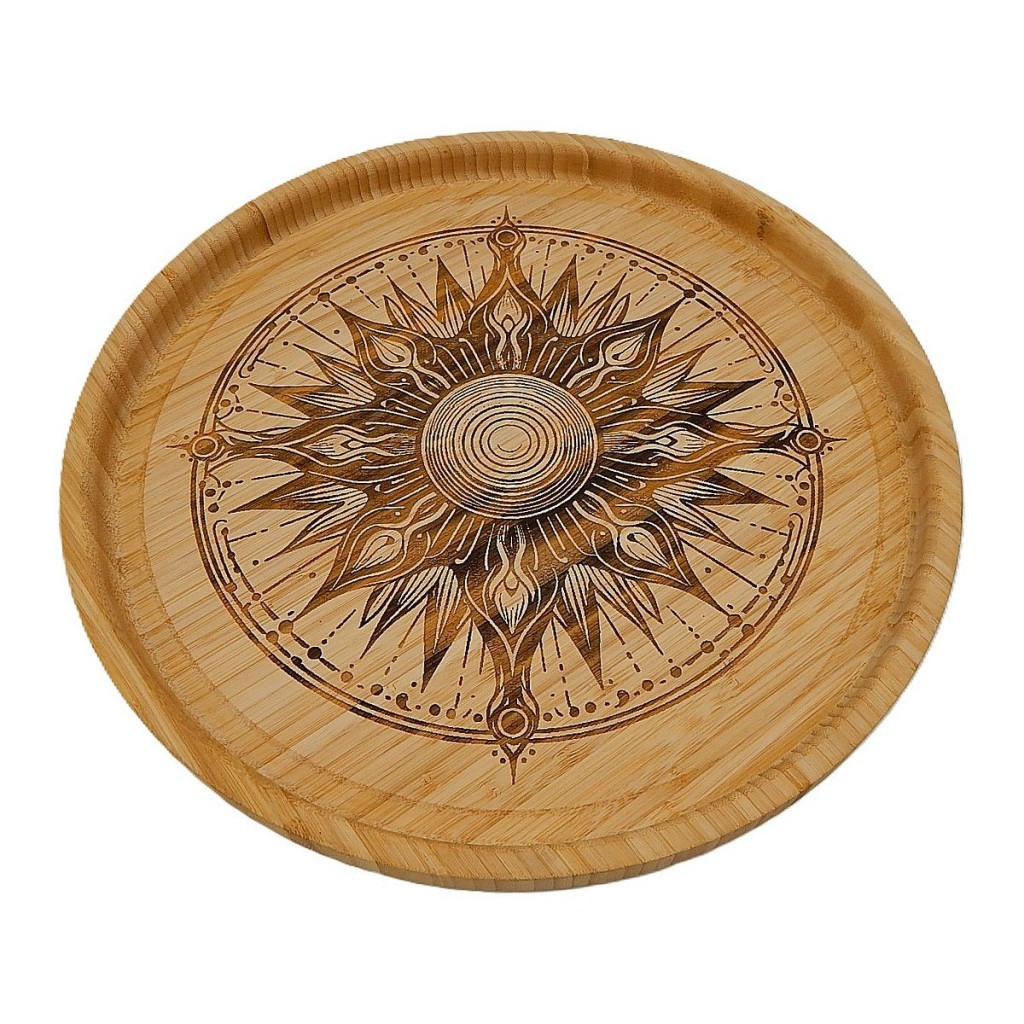 Velký podnos z bambusu o průměru 38 cm s gravírováním.